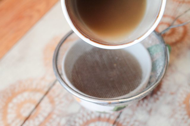 把濾器放在陶瓷或玻璃茶壺上,倒入薑茶。在飲用之前,你可以先加一點檸檬汁和甜味劑。