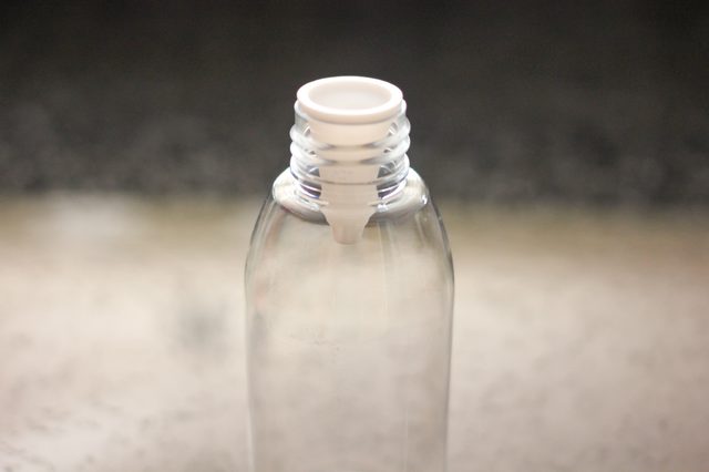 將漏斗插入空洗髮水瓶子的頸部。