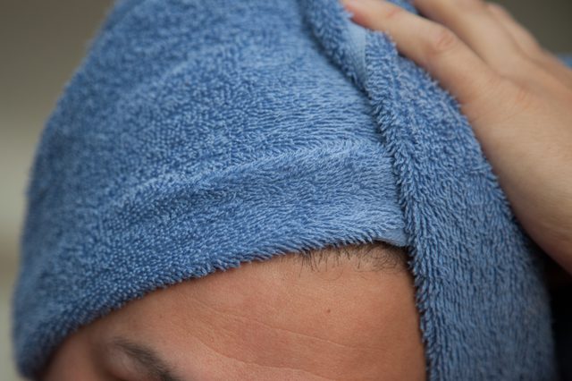 將2湯匙鮮榨檸檬汁,2湯匙水和2湯匙橄欖油放入碗中。用手指將液體按摩到乾燥的頭皮上,並在沖洗,洗髮和調理頭髮之前保持20分鐘。