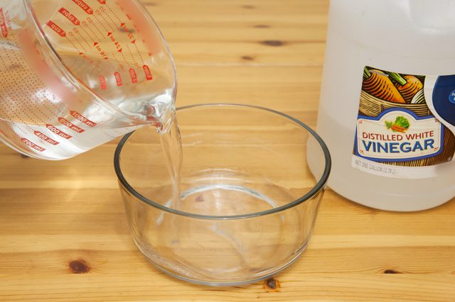 將1杯蒸餾白醋、葡萄酒醋或蘋果醋與3或4杯水混合。並將剩餘的醋和水混合物存放在冰箱中,以備日後使用。