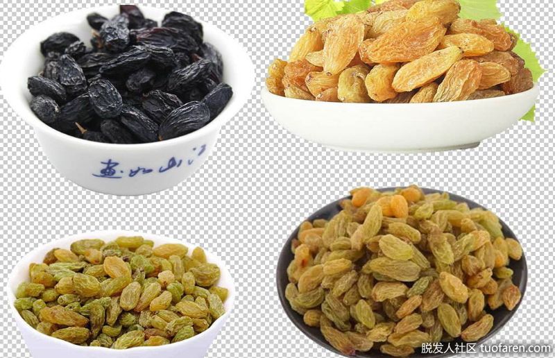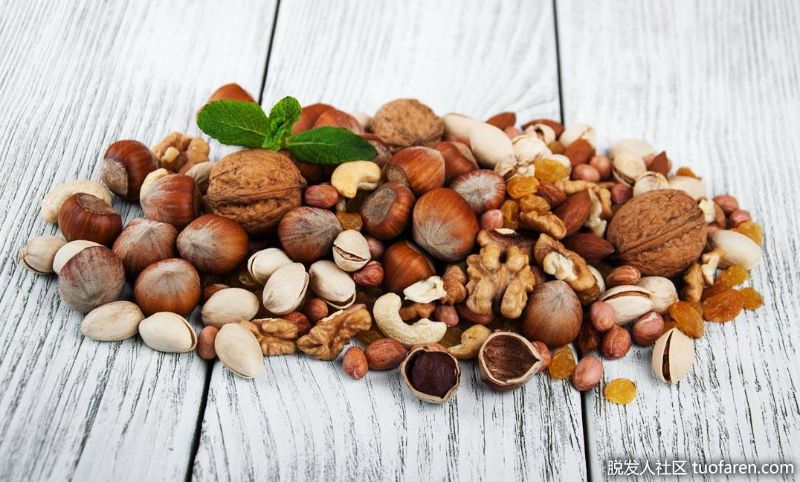 1、葡萄干含铁丰富,有利于血色素的产生,可促进血液将养分送达身体各个组织和器官,头发的生长也会得到更大的动力。 2、胡萝卜是维生素A的良好来源,维生素A可以促进头皮健康生长。 3、鸡蛋除了富含优质蛋白质之外,还含有大量有益头发的锌、硒、硫和铁等护发、养发的关键物质。另外,鸡蛋中的生物素(一种B族维生素)可增强发质、减少脱发和促进头发生长。 4、硒是保持头皮健康的很重要的一种矿物质。核桃含有α脂肪酸,是W-3脂肪酸的一种,可以帮助护理头发。同时,核桃也含有丰富的锌。杏仁也含有丰富的锌。锌缺乏会使头发易分叉,脱落。因此,多吃点坚果对头发有益。 5、红薯富含的β胡萝卜素可在人体内转化为维生素A,而维生素A缺乏会导致皮肤干燥,进而影响头皮,使头皮屑增多。红薯还是抗癌的最佳食物。 6、头发的首要成分是蛋白质,因此扁豆中富含的蛋白质可增强头发柔韧度,有益头发健康。 7、三文鱼脂肪酸的含量很高,该脂肪酸具有抗炎特性,有助于打开头皮的毛囊,改善头皮干燥和头发缺乏光泽的状况。 8、菠菜含有维生素B、C、E以及钾、钙、铁、镁等营养素。吃菠菜补铁,可增加红细胞携氧量,使毛囊更健康,头发更有光泽。