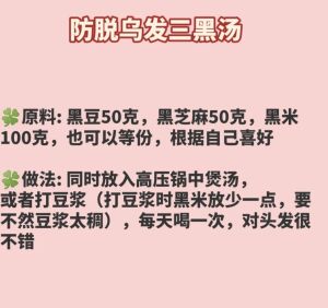 —01️⃣— ?去头油:吃杂粮 —02️⃣— ?白头发多:吃黑芝麻 —03️⃣— ?头发细软:吃魚肉 —04️⃣— ?头发暗淡无光:吃坚果 —05️⃣— ?头发长得=慢:吃牛肉 —06️⃣— ?头发发黄:吃海带 —07️⃣— ?掉头发:喝豆浆