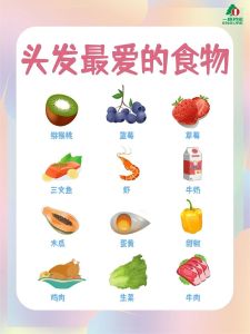 1、葡萄干含铁丰富,有利于血色素的产生,可促进血液将养分送达身体各个组织和器官,头发的生长也会得到更大的动力。 2、胡萝卜是维生素A的良好来源,维生素A可以促进头皮健康生长。 3、鸡蛋除了富含优质蛋白质之外,还含有大量有益头发的锌、硒、硫和铁等护发、养发的关键物质。另外,鸡蛋中的生物素(一种B族维生素)可增强发质、减少脱发和促进头发生长。 4、硒是保持头皮健康的很重要的一种矿物质。核桃含有α脂肪酸,是W-3脂肪酸的一种,可以帮助护理头发。同时,核桃也含有丰富的锌。杏仁也含有丰富的锌。锌缺乏会使头发易分叉,脱落。因此,多吃点坚果对头发有益。 5、红薯富含的β胡萝卜素可在人体内转化为维生素A,而维生素A缺乏会导致皮肤干燥,进而影响头皮,使头皮屑增多。红薯还是抗癌的最佳食物。 6、头发的首要成分是蛋白质,因此扁豆中富含的蛋白质可增强头发柔韧度,有益头发健康。 7、三文鱼脂肪酸的含量很高,该脂肪酸具有抗炎特性,有助于打开头皮的毛囊,改善头皮干燥和头发缺乏光泽的状况。 8、菠菜含有维生素B、C、E以及钾、钙、铁、镁等营养素。吃菠菜补铁,可增加红细胞携氧量,使毛囊更健康,头发更有光泽。